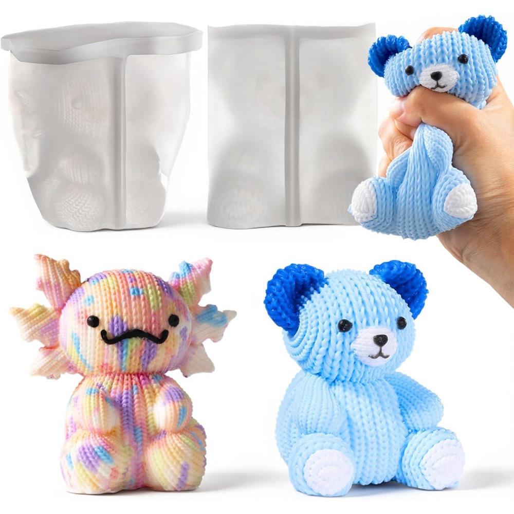 LET’S RESIN Bear and Axolotl Molds for Taba Squishy, Cute Crochet-Texture Animal Silicone Molds, Thick and Flexible Mould for Creating Unique Squishies, Ideal Gifts for Your Family