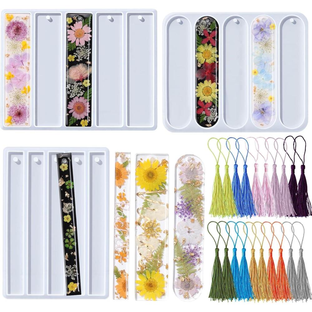 LET’S RESIN Bookmark Silicone Molds Set – 3 Shapes with 20Pcs Tassels for Epoxy Resin, Resin Bookmark Molds Silicone for DIY Handmade Bookmarks & Personalized Craft Gifts(3 style)