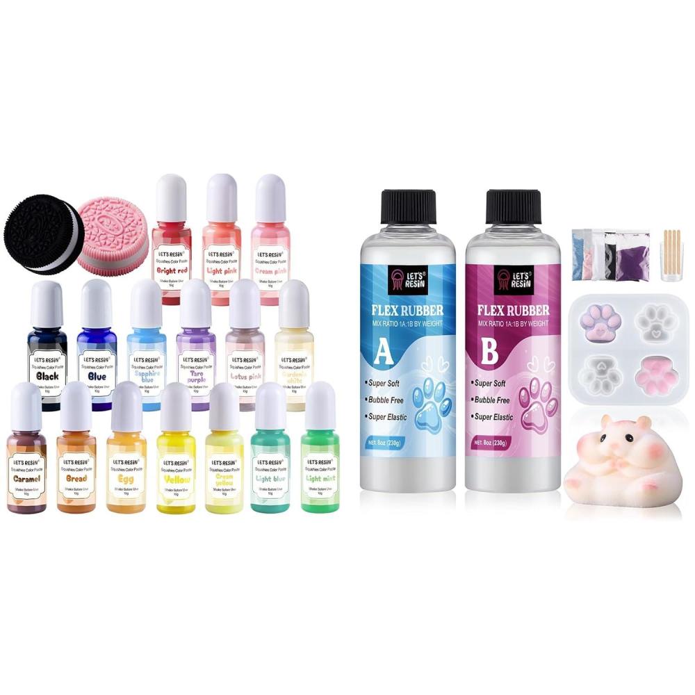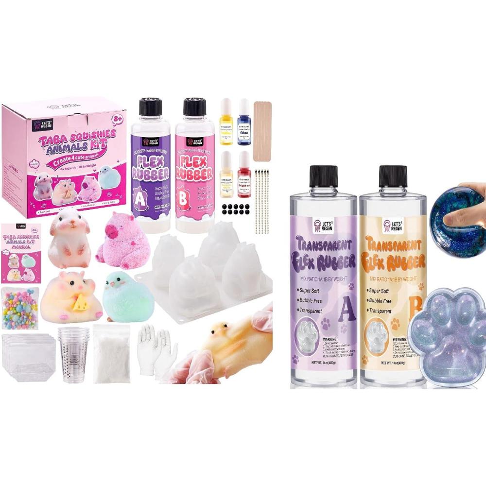 LET’S RESIN Flex Rubber All-in-one Beginner Kit for Taba Squishy and 28oz Transparent Flex Rubber