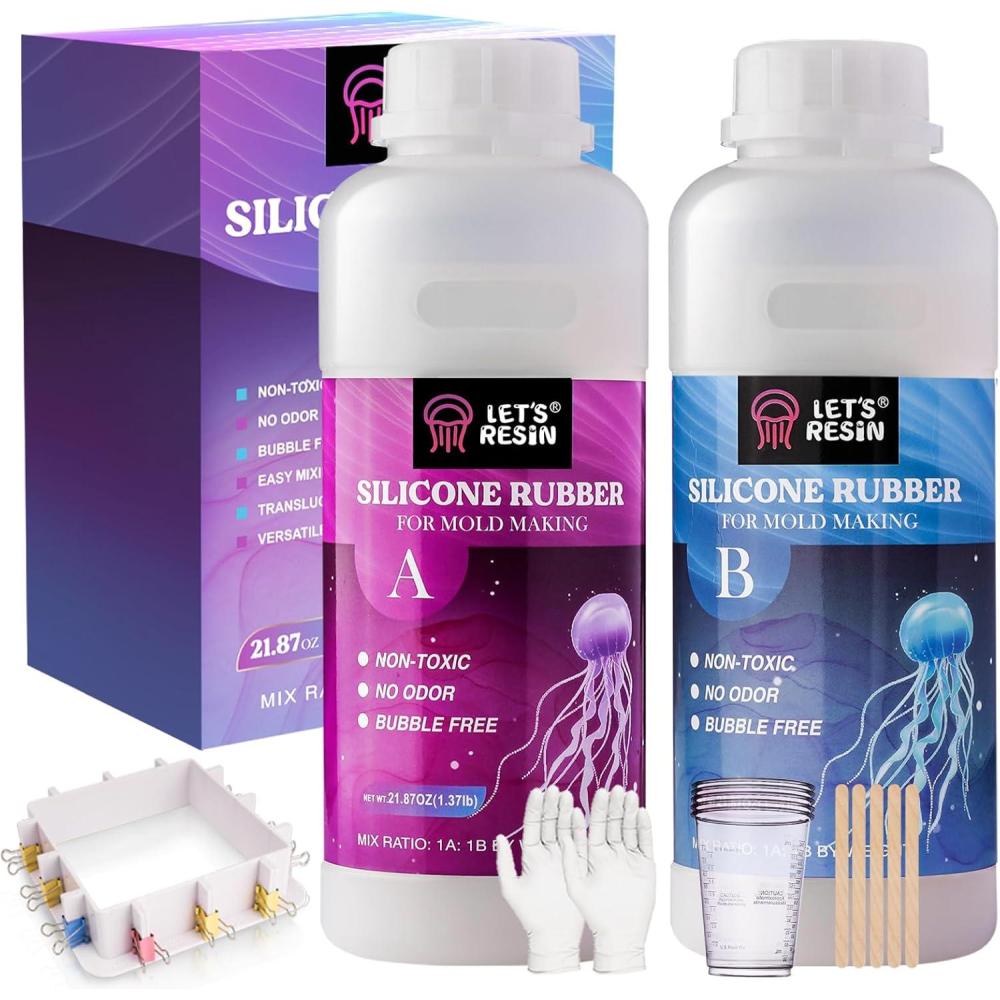 LET’S RESIN Silicone Mold Making Kit, 43oz Platinum Liquid Silicone Rubber with Mold Housing, Mixing Cups, Fast Cure Food Grade Silicone Mix Mold Making Kit for Casting Resin Molds & Silicone Molds