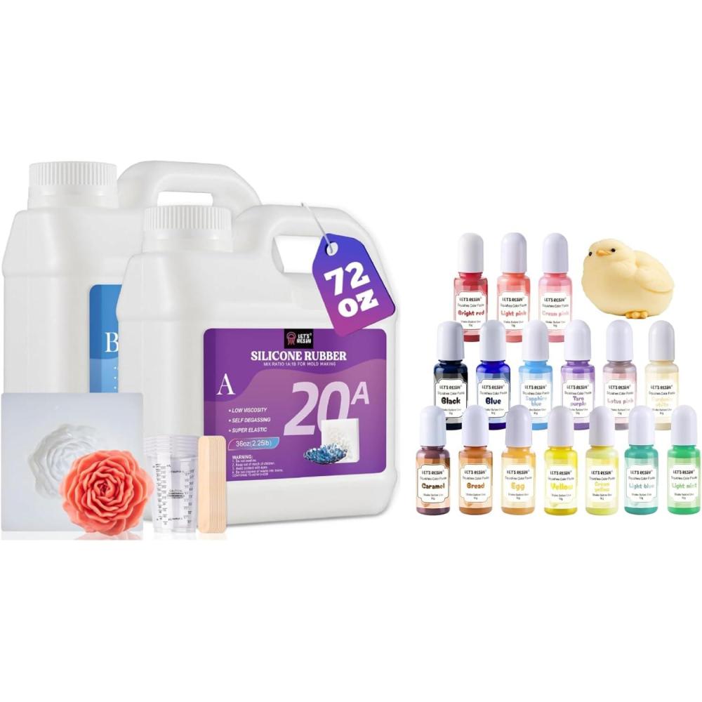 LET’S RESIN Silicone Mold Making Kit 72oz with Silicone Pigment Dye for Taba Squishy, 20A Non-Toxic Platinum Silicone Rubber for Mold Maker