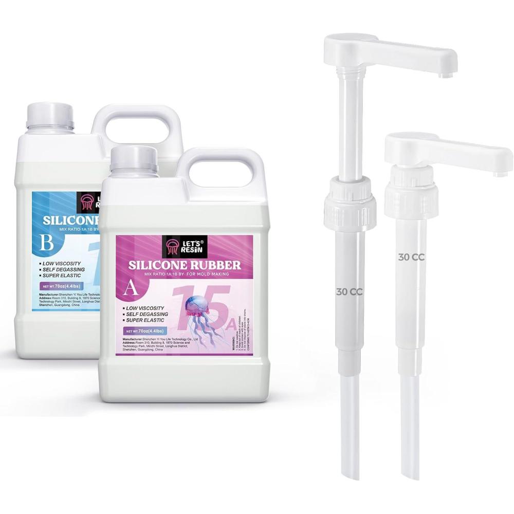 Bundle Set of LET’S RESIN 140oz Silicone Mold Making Kit and 30CC Gallon Pump Dispenser,