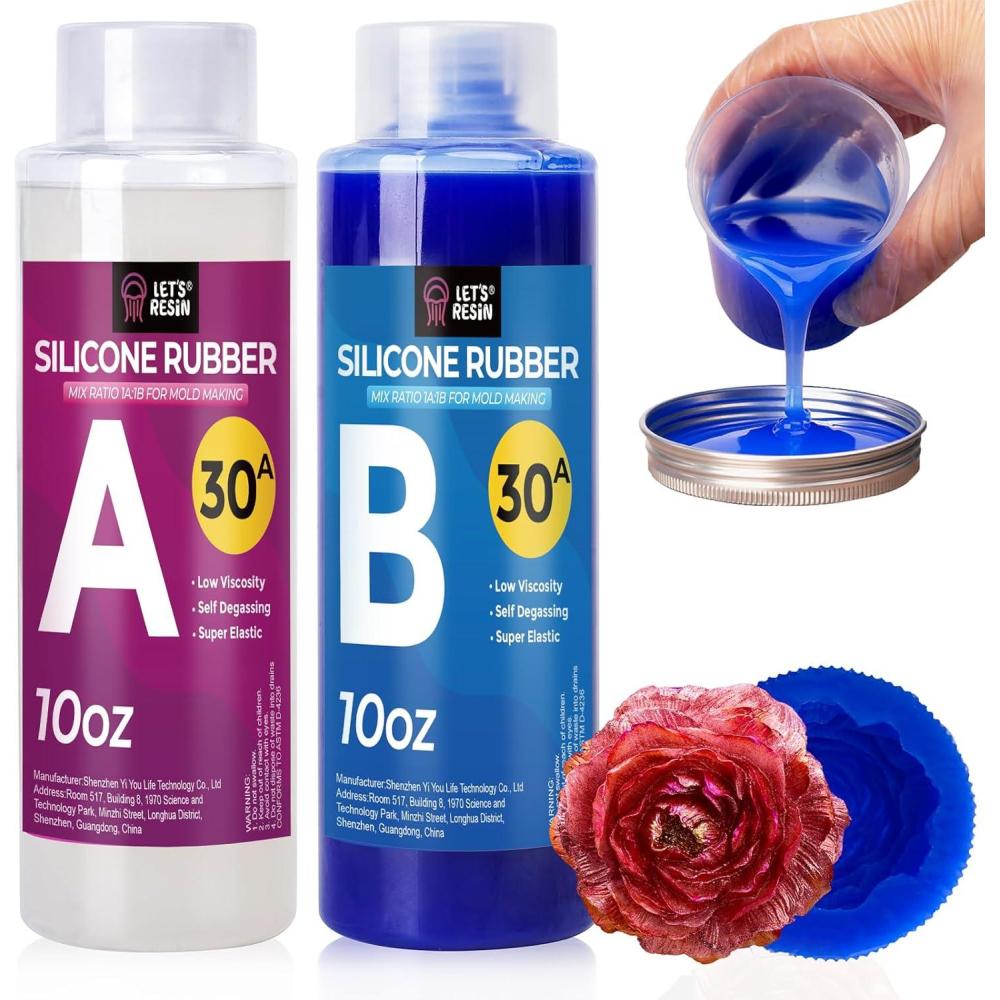 LET’S RESIN Silicone Mold Making Kit 30A,160oz/10Lbs Durable Mold Making Silicone Rubber, Fast Cure Platinum Cured Silicon, Self-Degassing Molding Silicon, Ideal for DIY Resin Molds(Small)