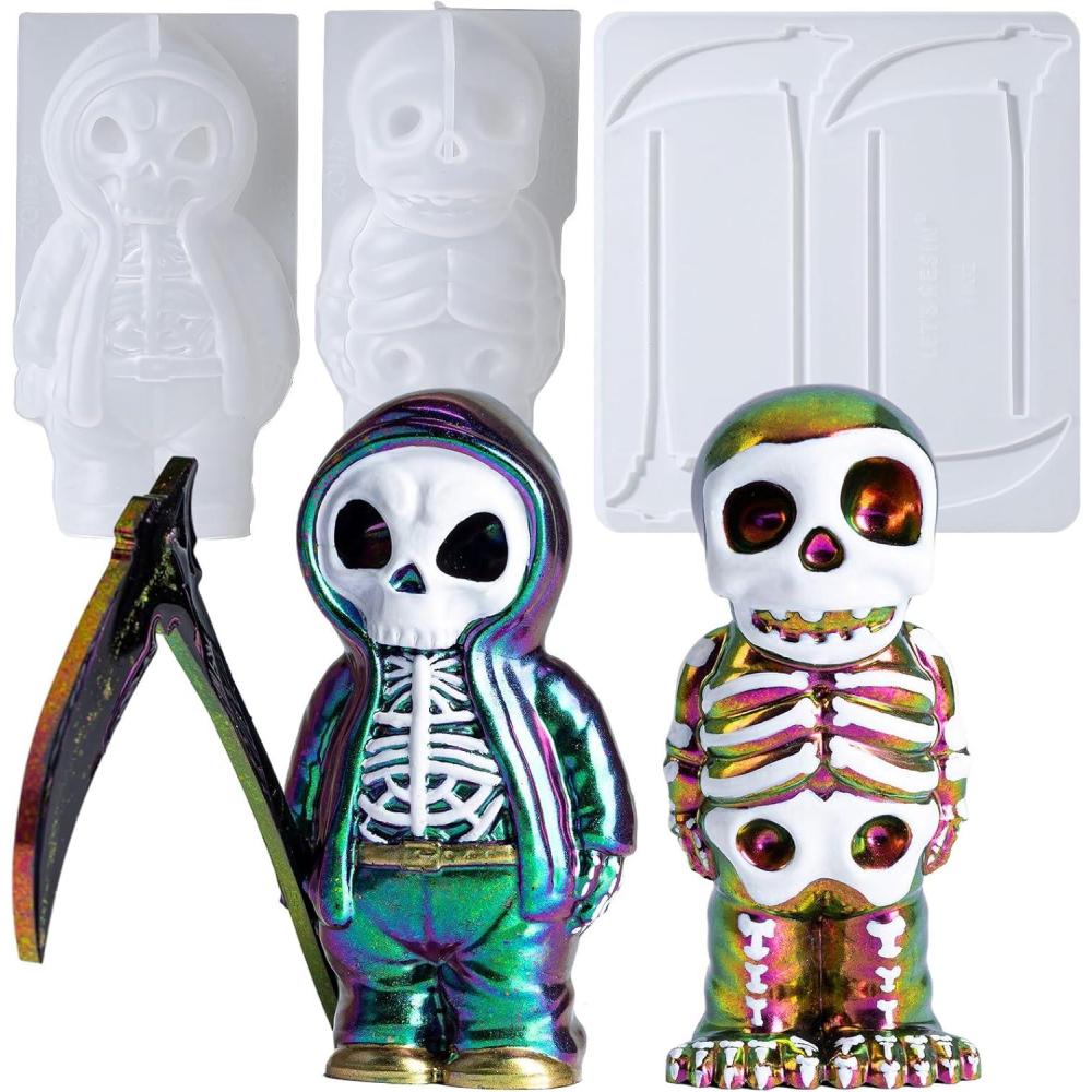 LET’S RESIN Grim Reaper Skull Resin Molds with Scythe,Funny Skull Silicone Molds for Resin, 3D Skeleton Epoxy Resin Molds for DIY Halloween Decorations & Gothic Spooky Figurine,Gifts