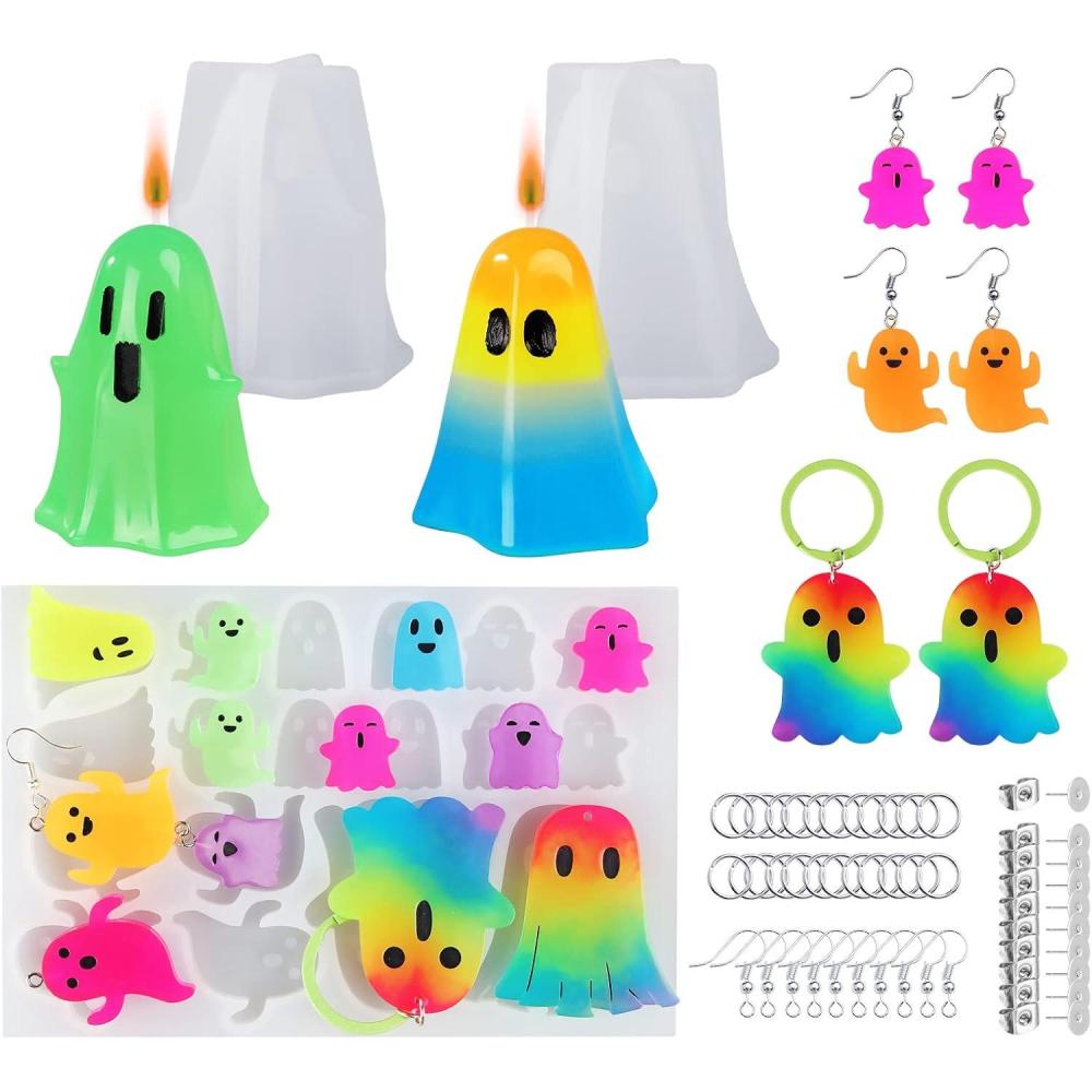 LET’S Resin Witch Cauldron Resin Mold, Halloween Resin Molds, 3D Jar Resin Molds Silicone 4.7” Width, Large Jar Molds for Epoxy Casting Craft, Storage Box,Candy Container,Candle Holder(Ghost Molds)