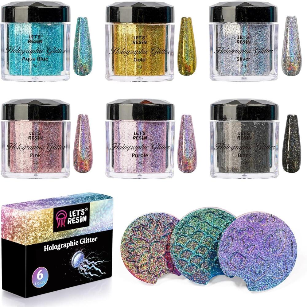 LET’S RESIN 0.08mm Holographic Glitter, Ultra Fine Glitter for Epoxy Resin/Resin Molds, Sparkle Saturated Color Pigment Powder for Nail Art, Slime, Tumbler, Hair(blue)