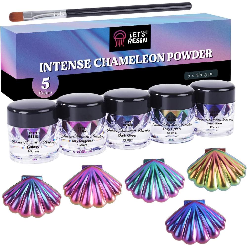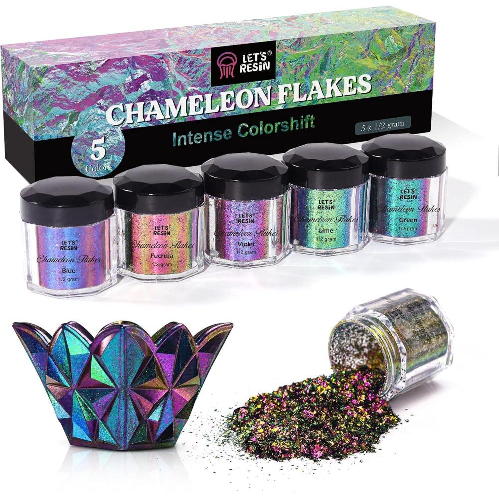 LET’S RESIN Chameleon Flakes, Resin Supplies -Intense Color Shift Pigment Powder for Resin Molds/Tumblers, Chrome Powder Pigment for Christmas Nail Art/Paint/Soap Making