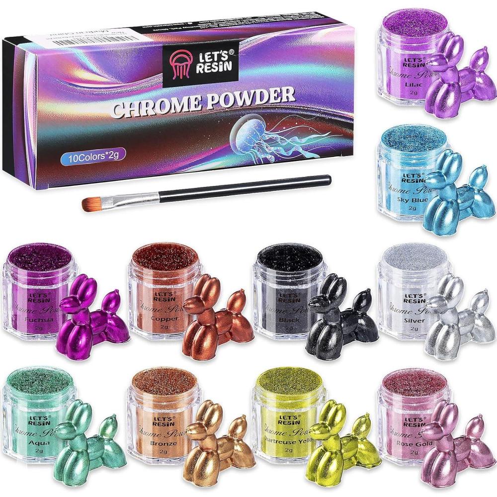 LET’S RESIN Chrome Powder,10 Colors Metallic Mirror Effect Chrome Powder for Nail, Holographic Pigment for Epoxy Resin, Slime, Crafting, Tumbler, Oil Painting(new 10 colors)