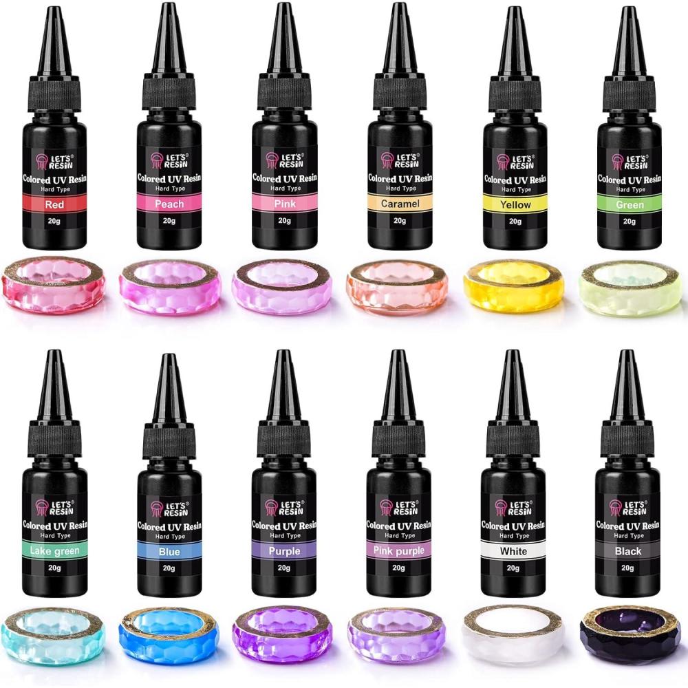 LET’S RESIN 12 Colors UV Resin, Ultraviolet Clear, Odorless & Low Shrinkage UV Resin Kit for Crafts, Jewelry Making, Decoration(20g Each)