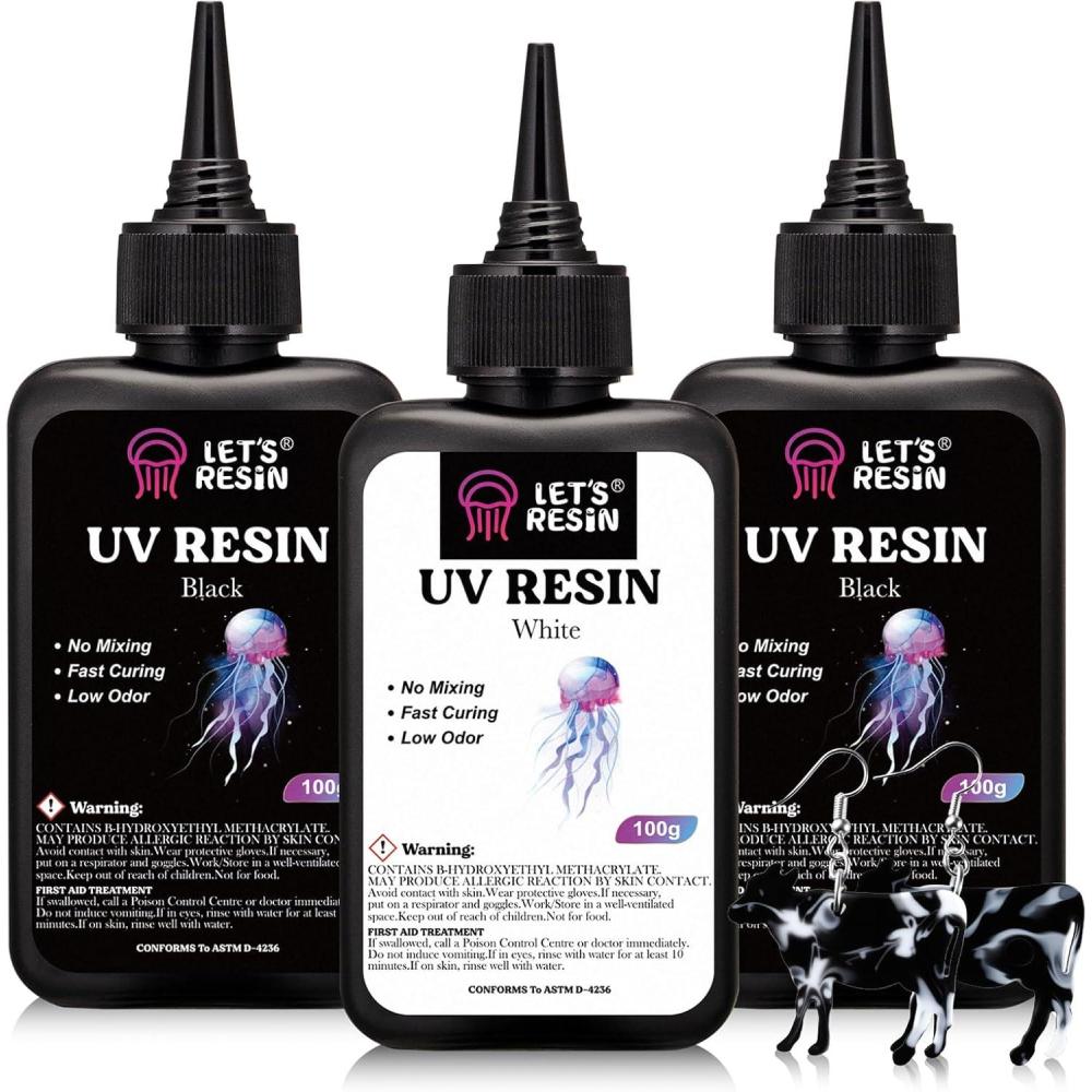 LET’S RESIN Colored UV Resin, 300g Large Capacity White& Black UV Resin, Dark Odorless & Low Shrinkage UV Color Resin for Crafts, Jewelry Making, Colored Resin Casting and Coating