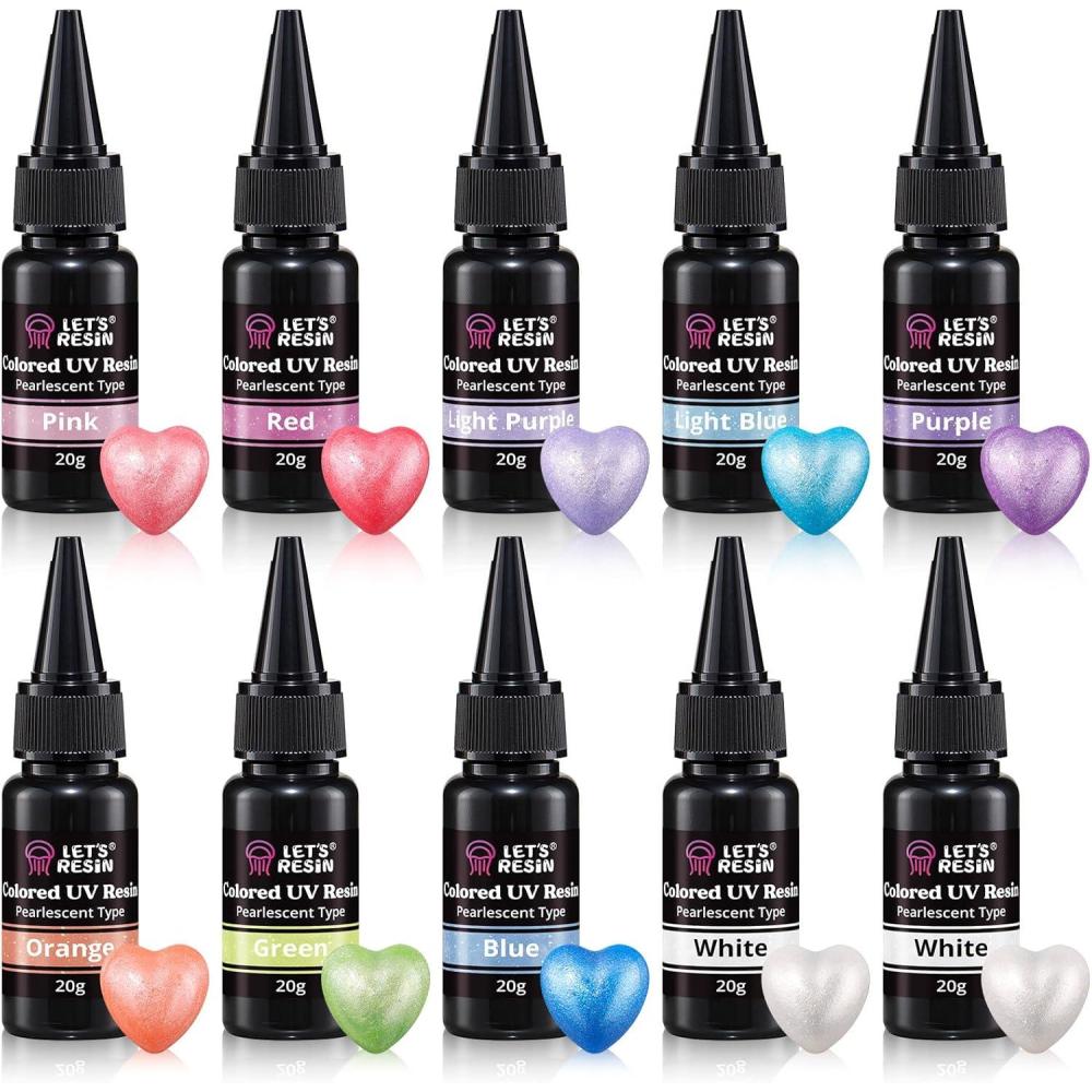 LET’S RESIN Pearlescent UV Resin, 10 Colors Colored UV Resin, Low Odor & Minimal Bubbles for Resin Casting and Coating, Jewelry Making, Decoration(20g Each)