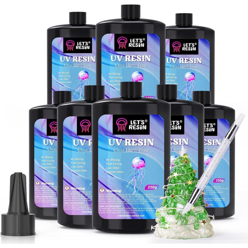 LET’S RESIN UV Resin, 2,000g 250ml 8Pcs Faster Cure Crystal Clear UV Resin Bulk,Low Shrinkage No Tacky UV Epoxy Resin Kit,Transparent High Gloss Resina UV for Jewelry Making,Craft Decor(2000G)