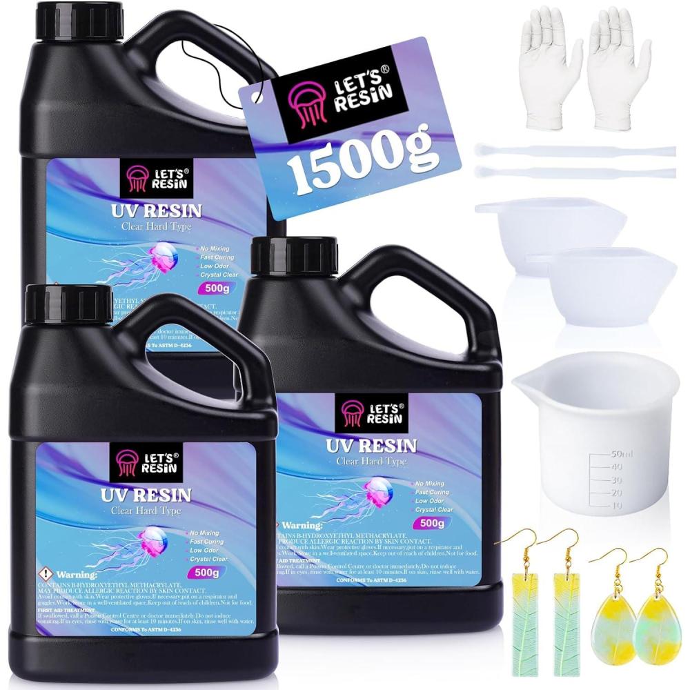 LET’S RESIN UV Resin, 300g Low Viscosity Crystal Clear Thin Resin Kit, Quick-Curing & Low Shrinkage Ultraviolet Epoxy Resin for Crafts, Casting, Silicone Molds(1500g)