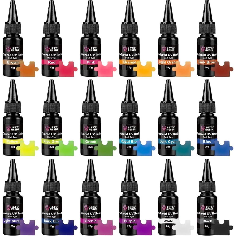 LET’S RESIN UV Resin,18 Dark Colored UV Resin, Odorless & Low Shrinkage UV Color Resin with Vibrant Colors, Black and White UV Resin Kit for Crafts, Jewelry Making, Colored Resin Casting and Coating