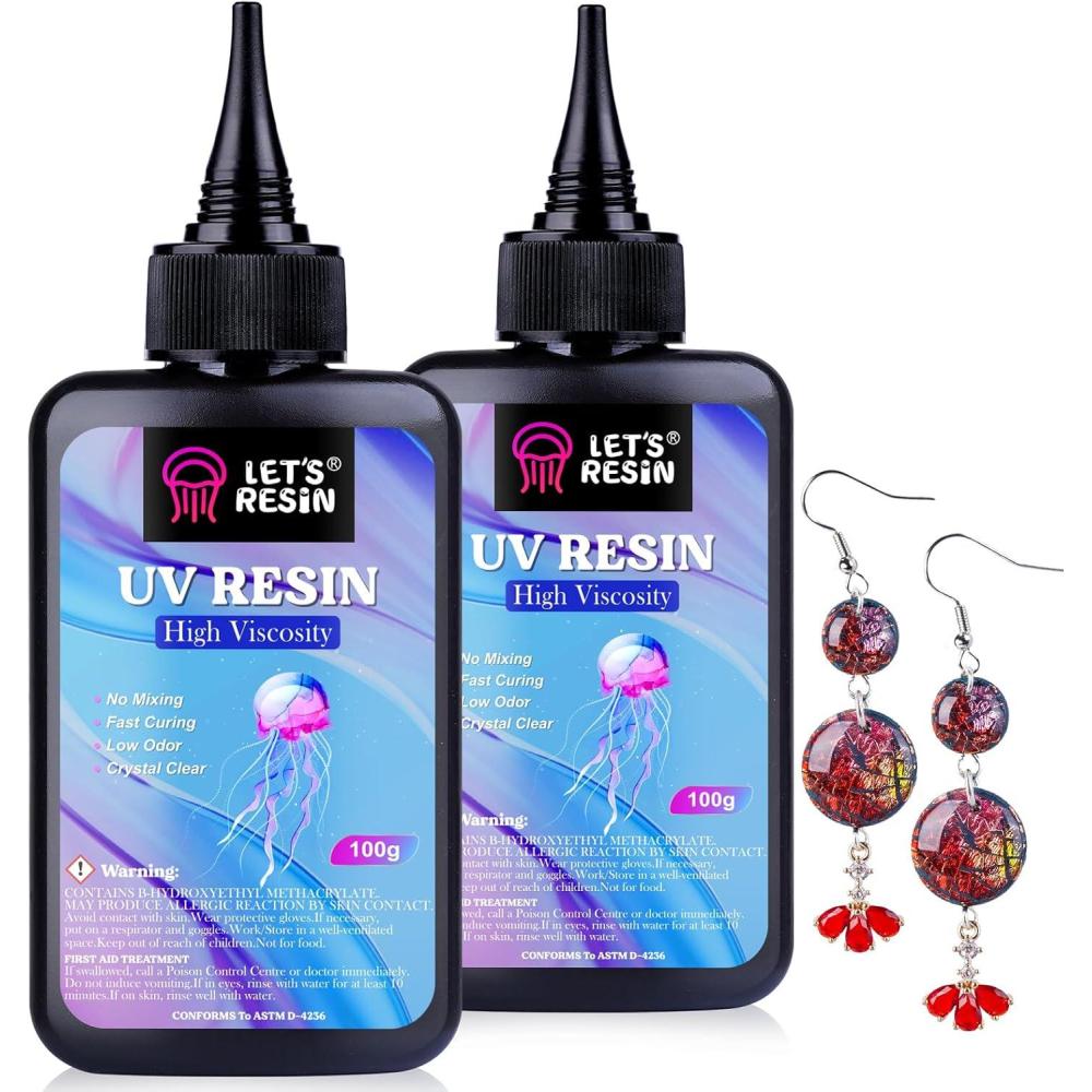 LET’S RESIN UV Resin, Upgraded 1,000g Crystal Clear UV Resin Hard, Low Odor Ultraviolet Epoxy Resin, UV Light Cure Solar Sunlight Activated Glue for Jewelry, Craft Decoration(200G UV RESIN)