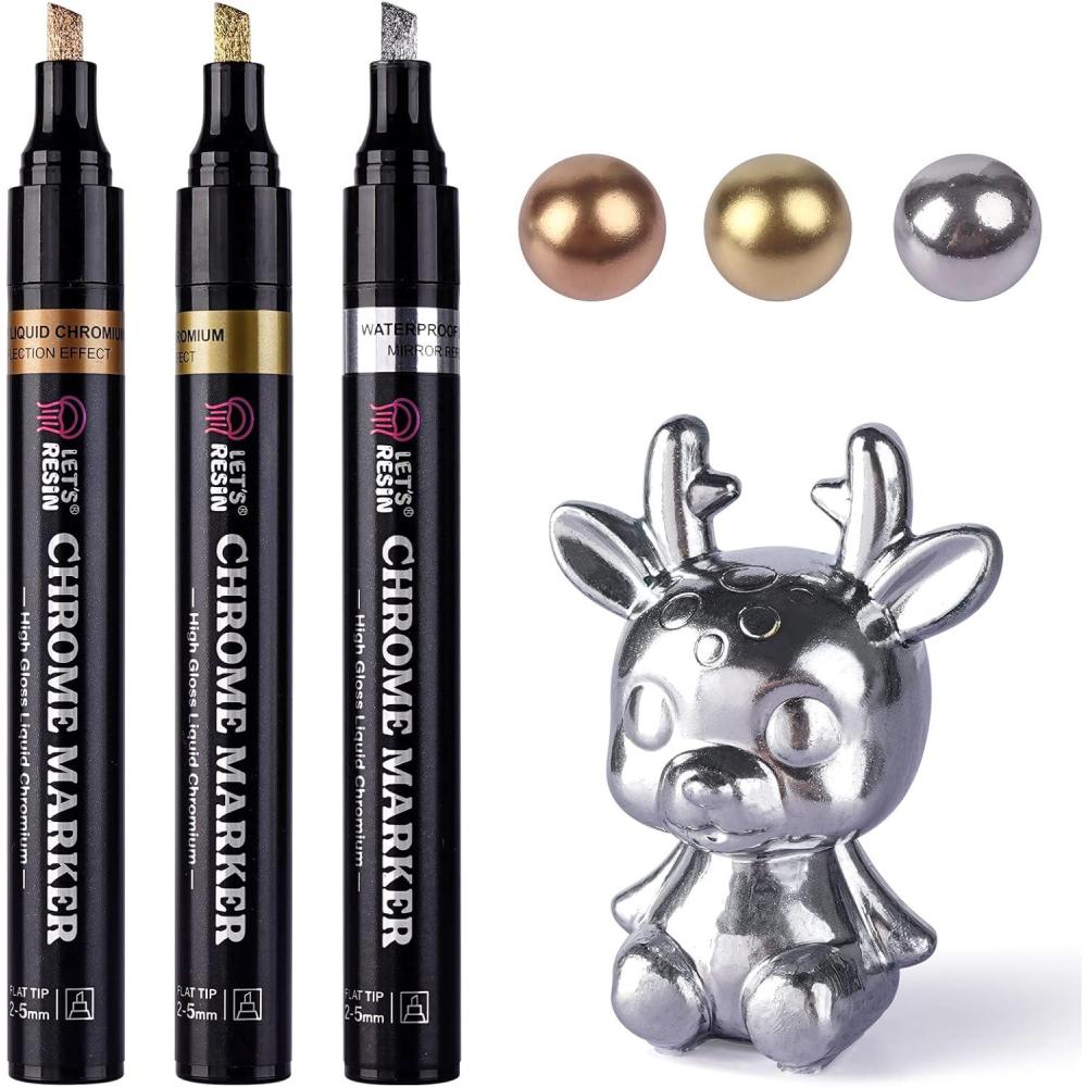LET’S RESIN 6Pcs Mirror Chrome Markers,3 Sizes Shiny Chrome Paint Pen with Large Barrel, Quick Dry Oil-based Silver & Gold Markers for Metal, Resin,Model Painting,Marking,DIY Art & Jewelry Repair Kit(3pcs)