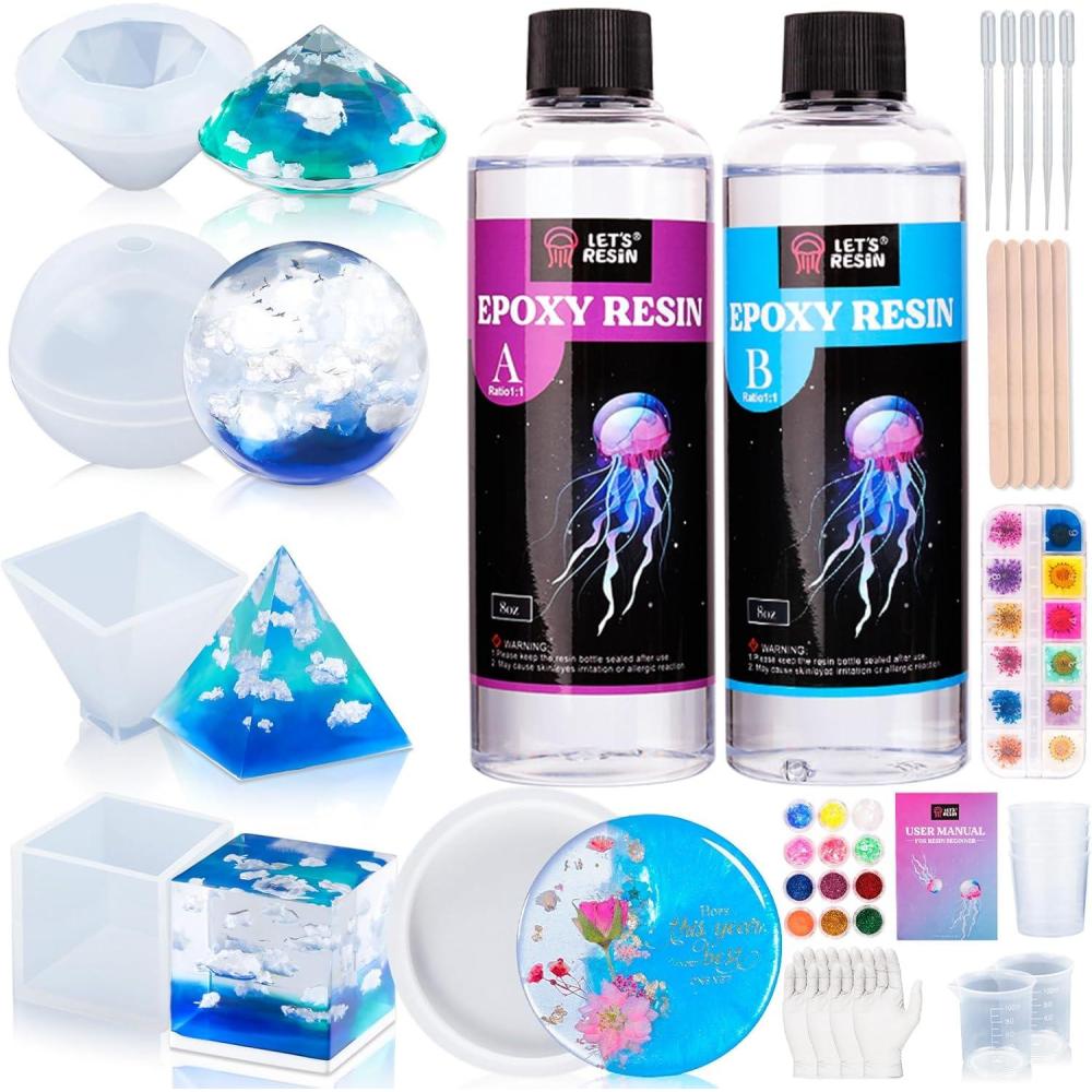 LET’S RESIN Epoxy Resin Kits and Molds Complete Set, 16oz Resin Art Kit with Silicone Molds, Pigment, Dried Flowers, Crafts for Adults, Beginners, Art Supplies for DIY Lovers, DIY Gift for Women