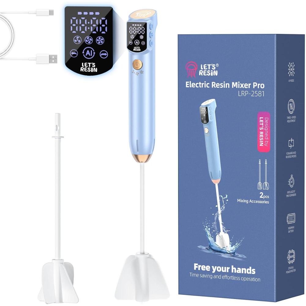 LET’S RESIN Upgraded Rechargeable Resin Mixer,Handheld 3-Speed Epoxy Mixer with Minimizing Bubbles, Electric Resin Mixing Tool for Epoxy Resin, Silicone, Paint, DIY Crafts(Resin Mixer Set)
