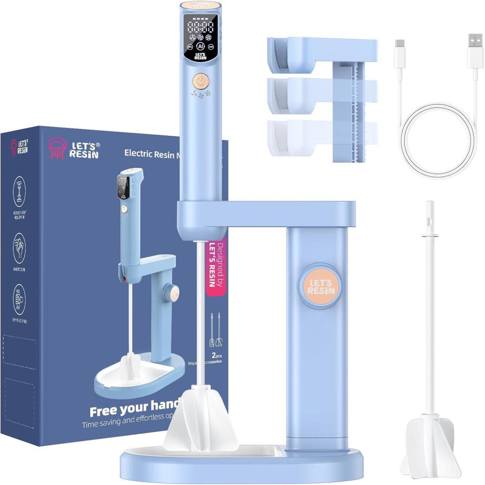 LET’S RESIN Upgraded Rechargeable Resin Mixer,Handheld 3-Speed Epoxy Mixer with Minimizing Bubbles, Electric Resin Mixing Tool for Epoxy Resin, Silicone, Paint, DIY Crafts(Resin Mixer Stand)