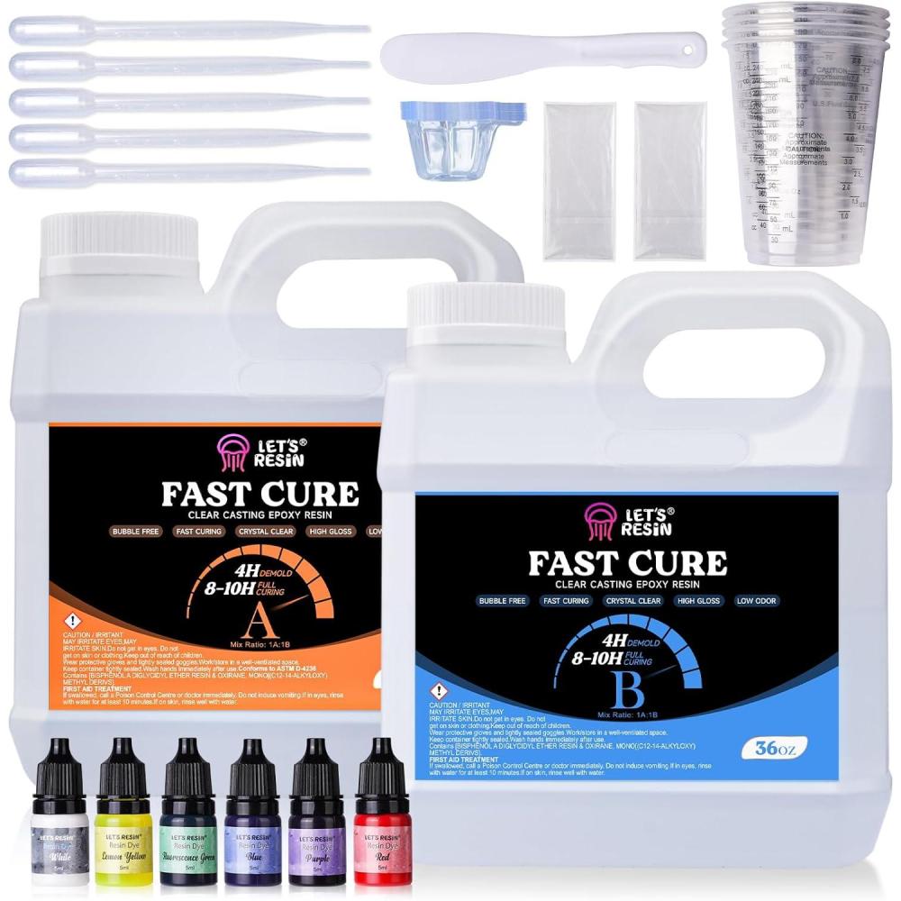 LET’S RESIN Fast Cure Epoxy Resin,Demold in 4 Hours,72OZ Upgrade Quick Drying & Crystal Clear Resin,Bubble Free Epoxy Kit for Craft,Art, Craft Supplies with Dye, Cup,Stir Stick(Large)