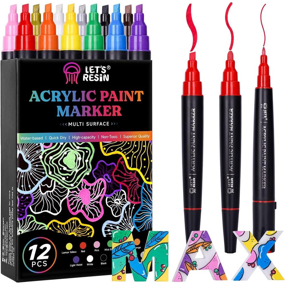 LET’S RESIN 12 Colors Acrylic Paint Markers, 3 Tips Multi-Purpose & High-Capacity Acrylic Paint Pens, Perfect Resin Supplies for Resin Crafts, Rock, Stone, Canvas, Glass, DIY Making Art Supplies(12 Count (Pack of 1))