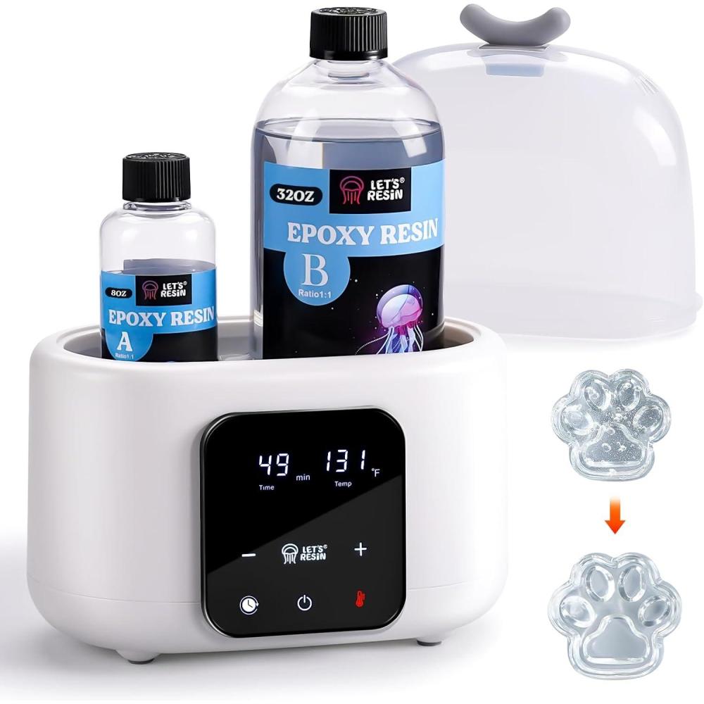 LET’S RESIN Auto Resin Preheater, Accurate Temp Control Resin Warmer, with LCD Display, Timer, Reduce Bubble and Thins Viscosity, for 8,16,32oz Epoxy Résin, UV Résin, Silicone Rubber