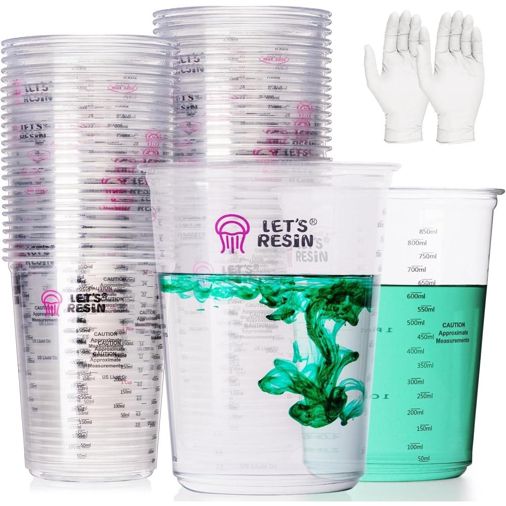LET’S RESIN Epoxy Mixing Cups Kit,200Pcs, Plastic, 30ml Disposable Measuring Cups,50 Wooden Stirring Sticks for Paint Mixing, Jewelry Making(1000ML)