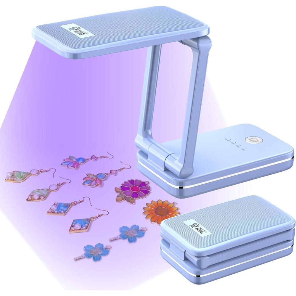LET’S RESIN Portable Cordless UV Lamp, Rechargeable UV Light with Foldable & Adjustable Height, Large Curing Area, 2H Battery Life, 20min Curing for Molds, Jewelry Making UV Resin Curing Tool