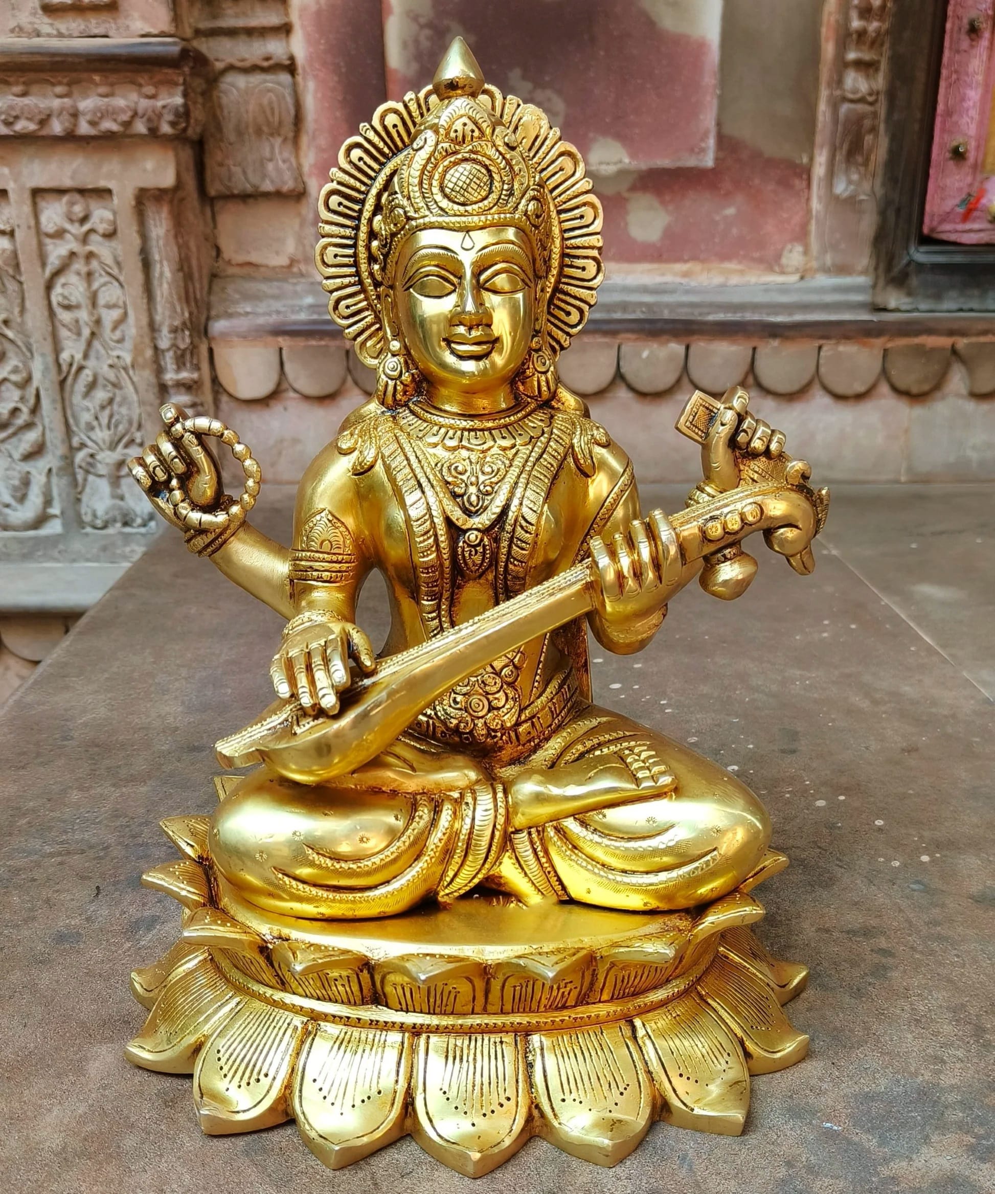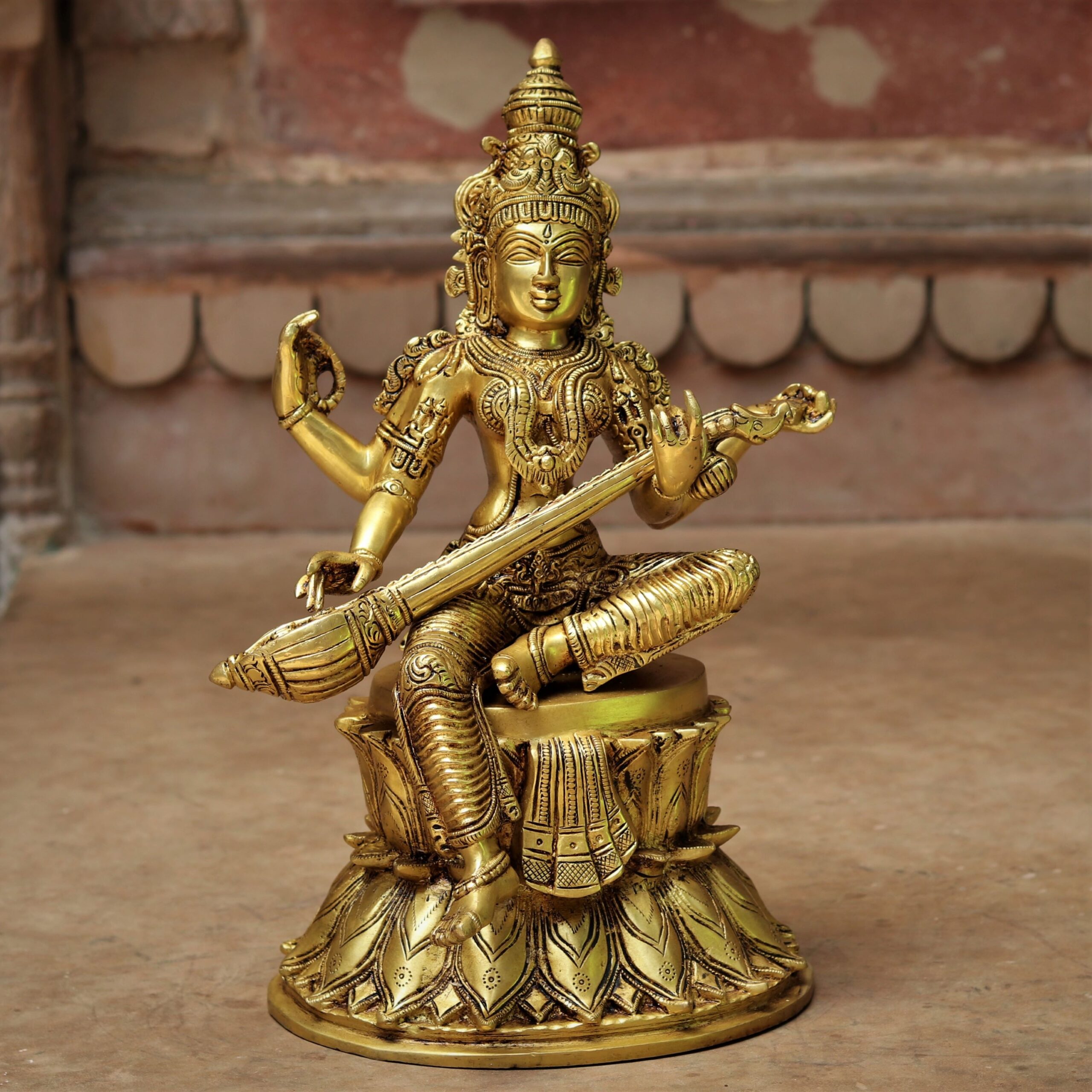 Superfine Brass Saraswati Statue – 12 inches