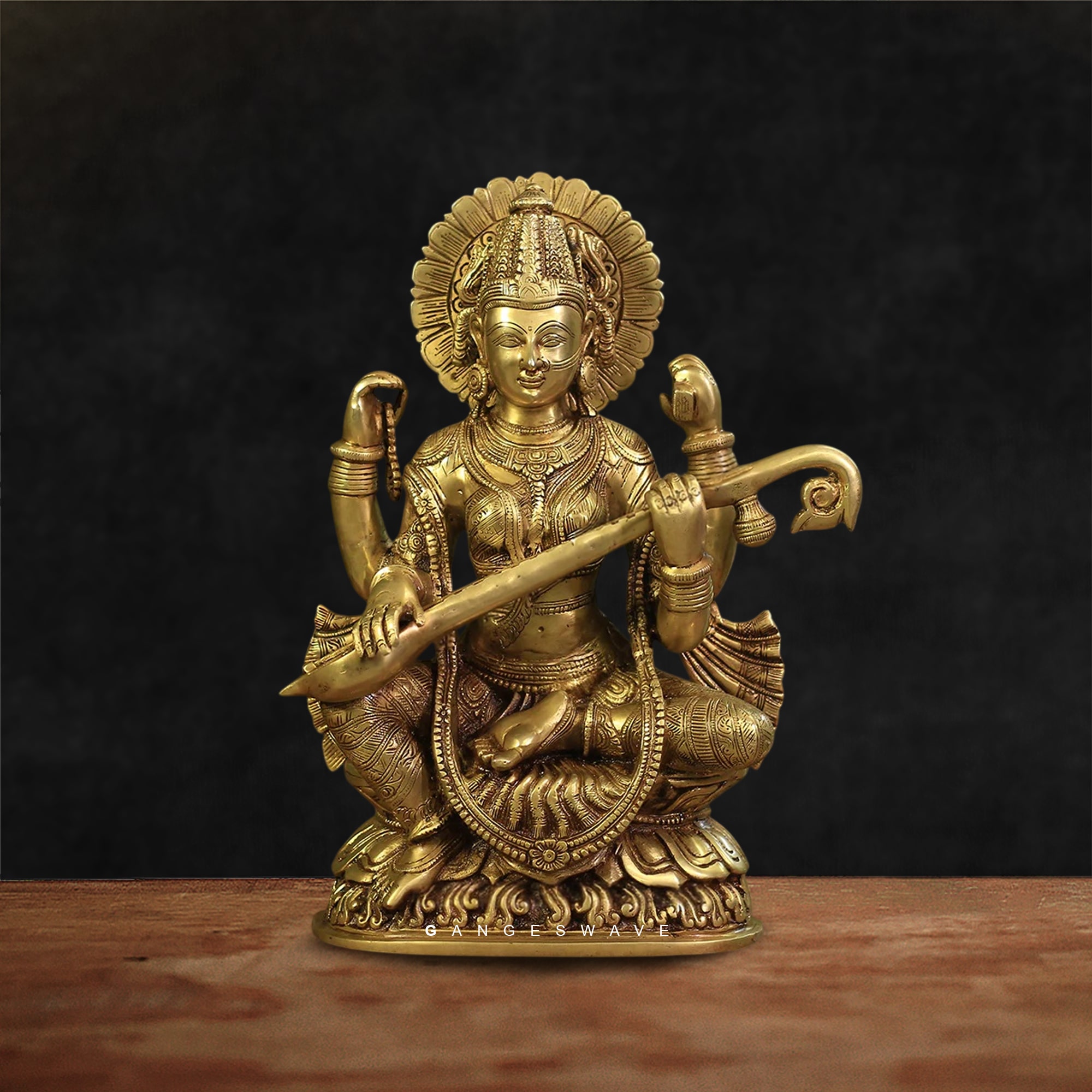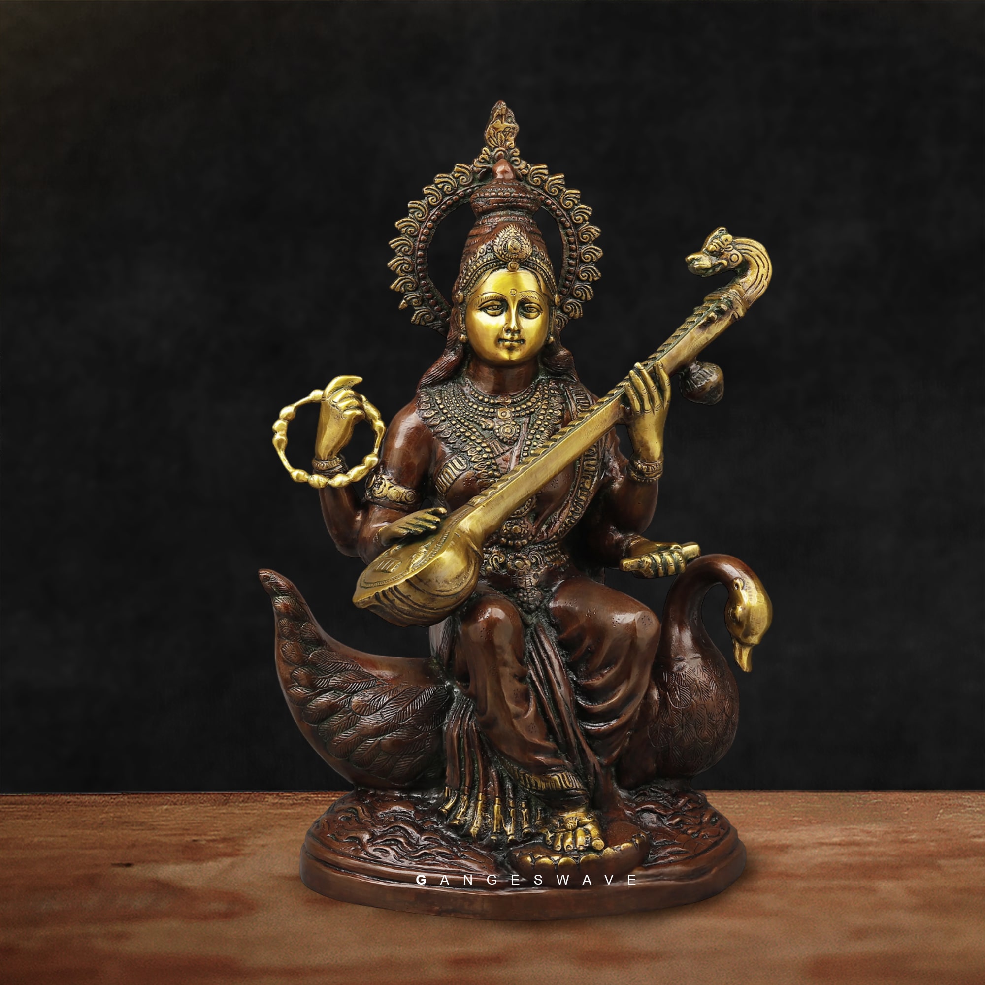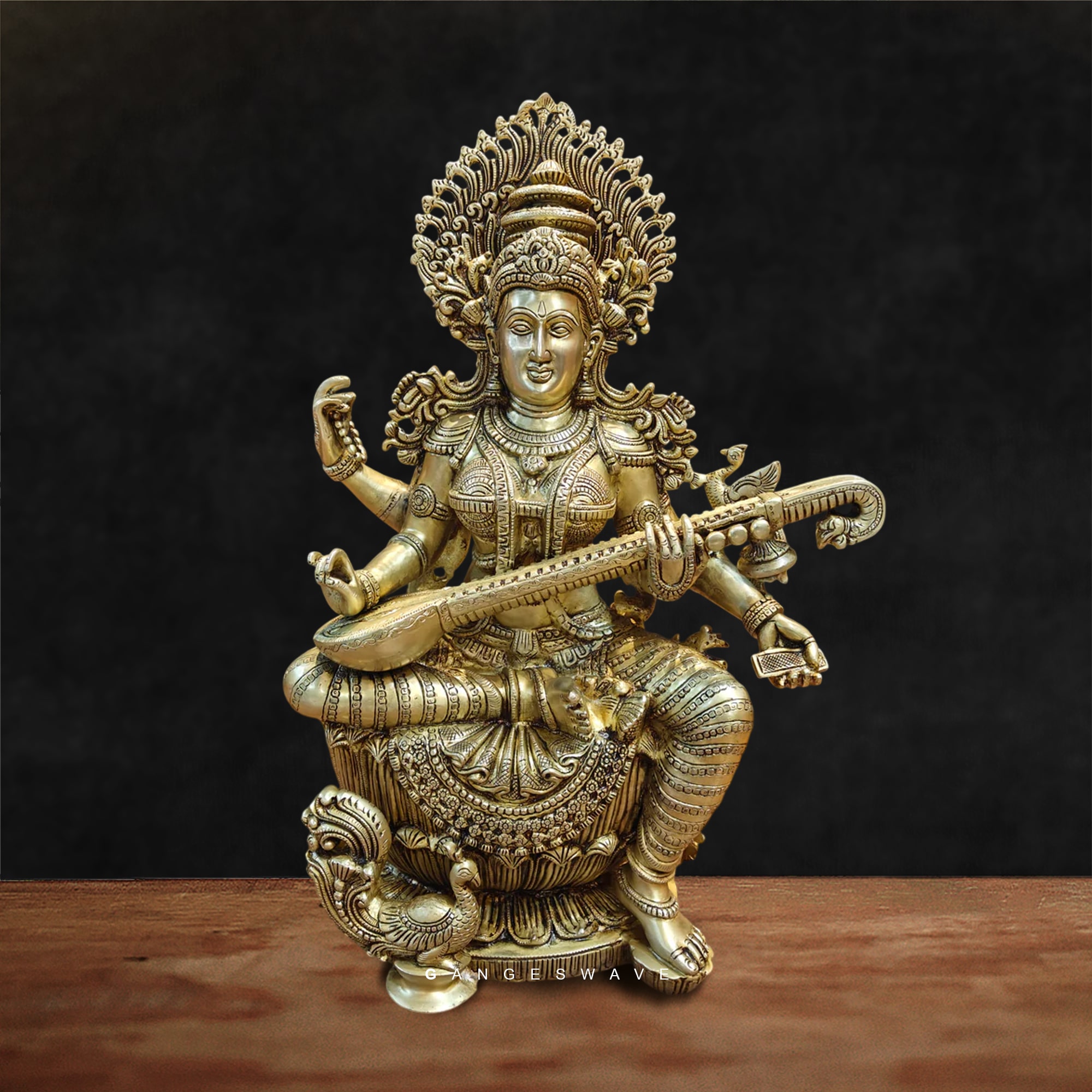GOLDEN MAA SARASWATI BRASS STATUE – 14 inches