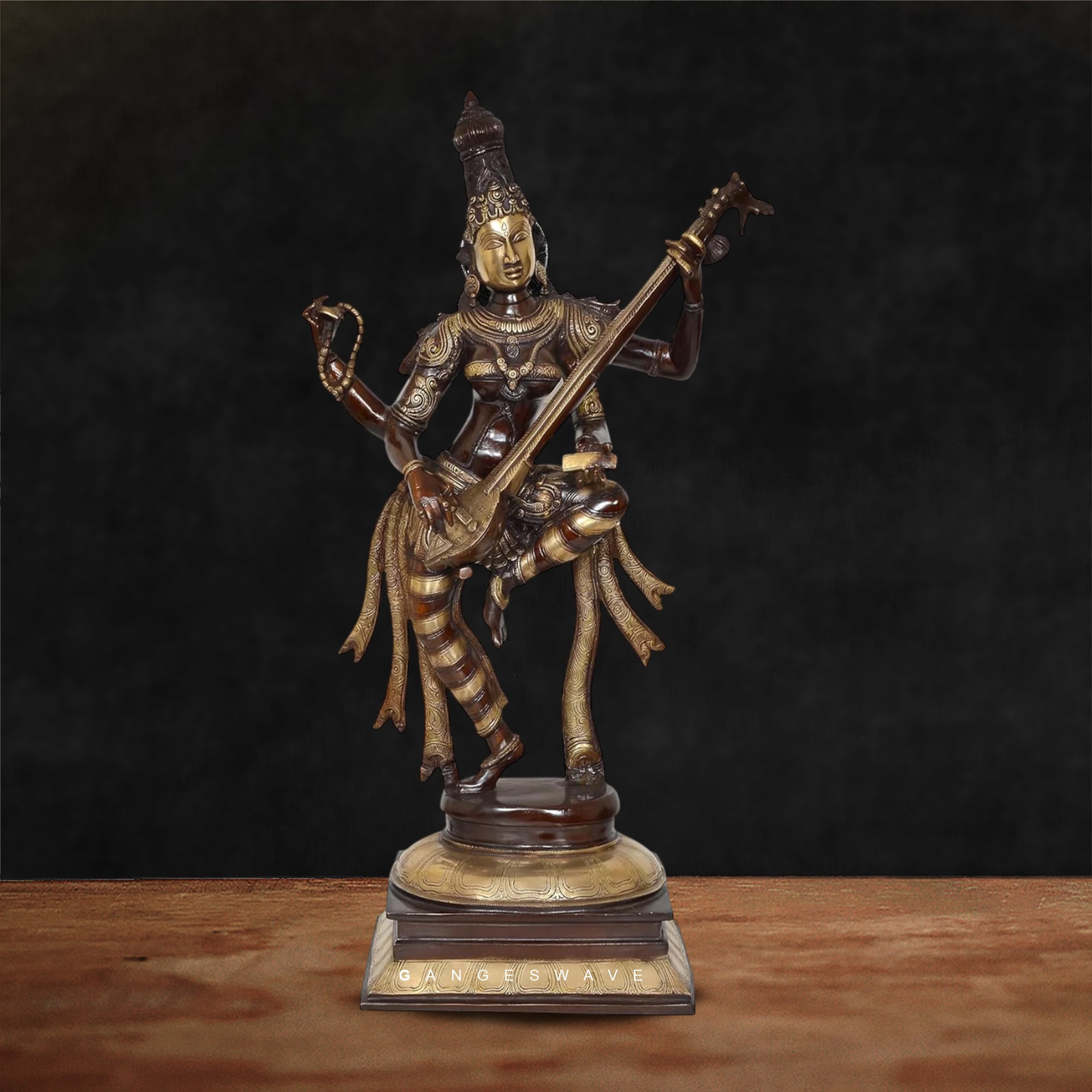 Masaraswati Dancing Brass Statue with Veena – 32 inches