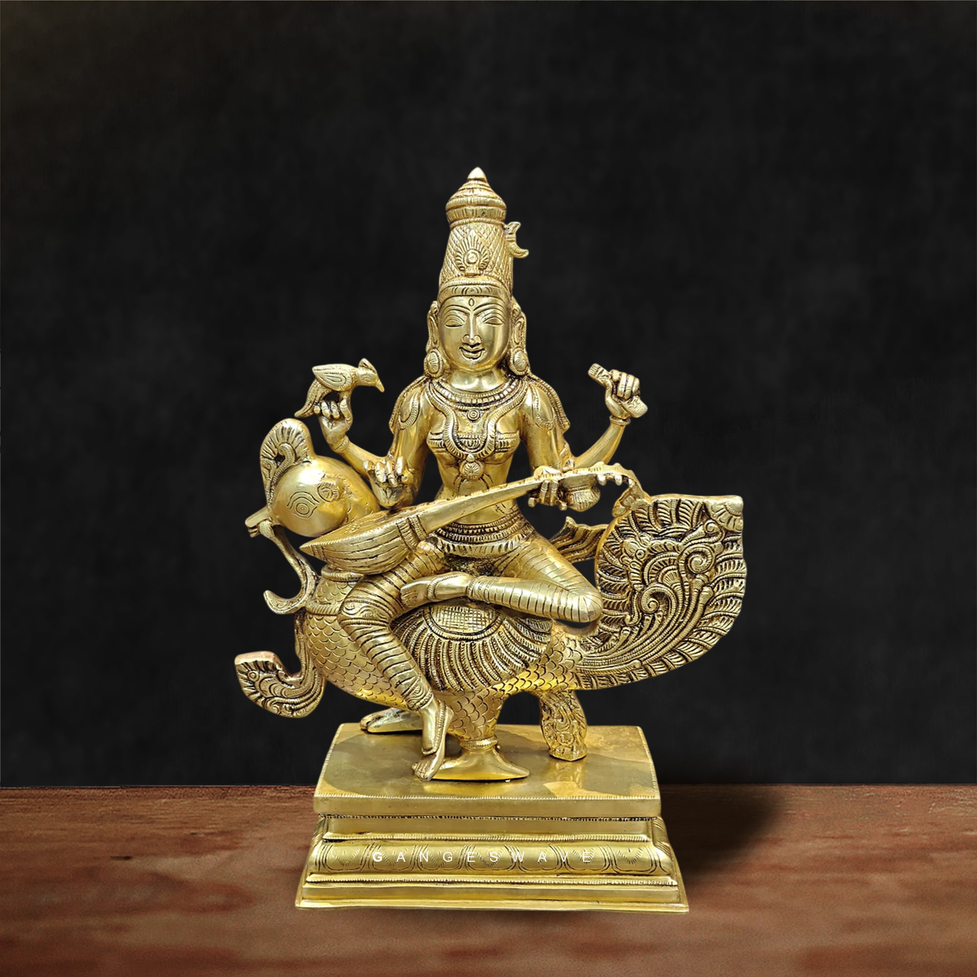 Maa Saraswati Brass Idol on Peacock Vahana
