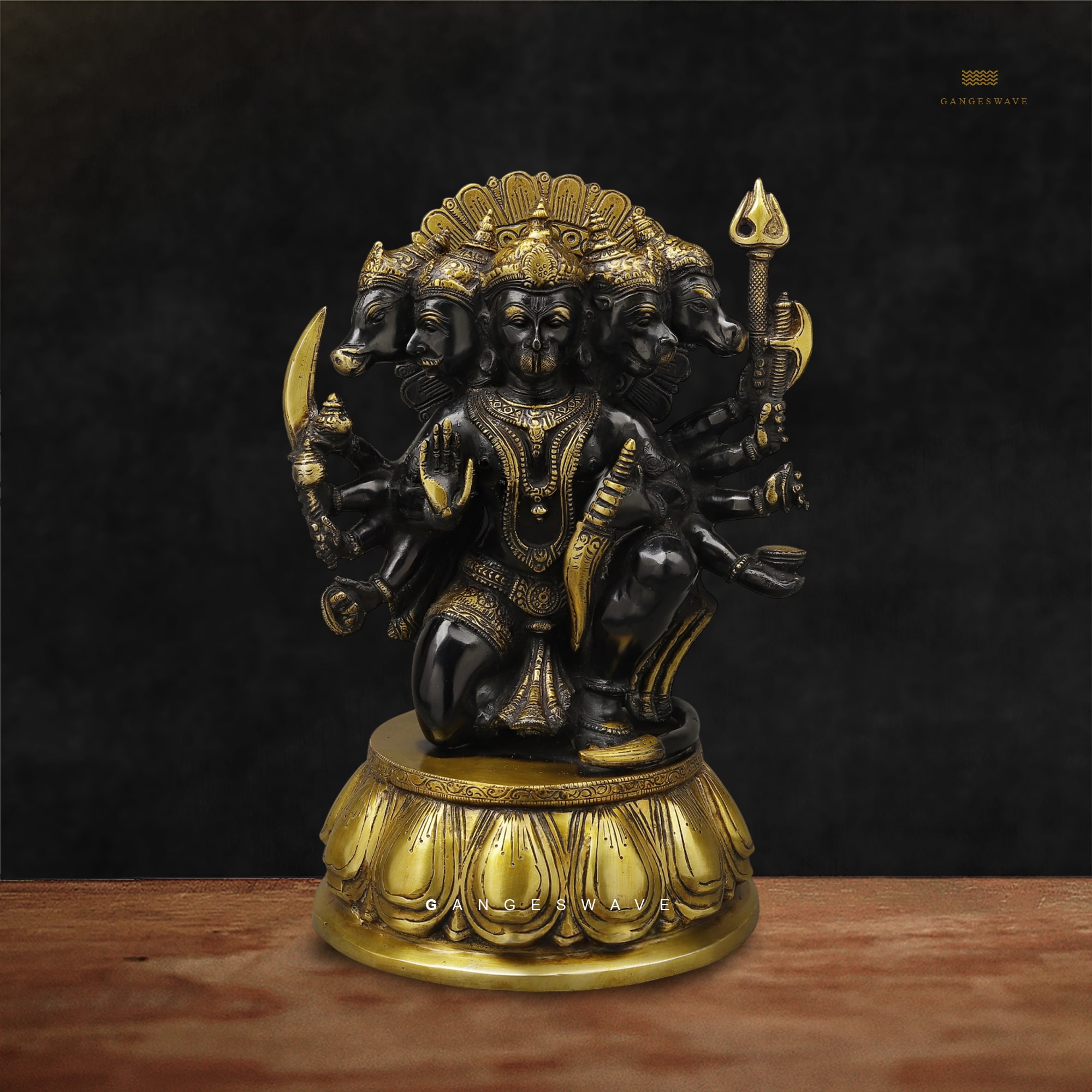 13 inches Brass Black Panchmukhi Hanuman